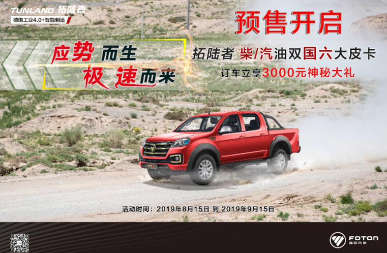 国典品质 国民首选 购福田拓陆者大皮卡享最高优惠10,000元