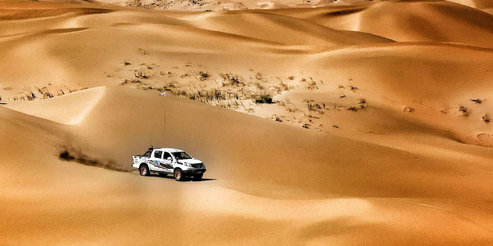 9月26日至28日驾驶福田拓陆者S的“沙漠之王”爽歪歪与驾驶牧马人的直隶总督府女车手直隶清新拉开了“腾格里—巴丹吉林双漠双英穿越挑战赛”的帷幕。比赛路段将由雅布赖向西横穿巴丹吉林到古日乃。